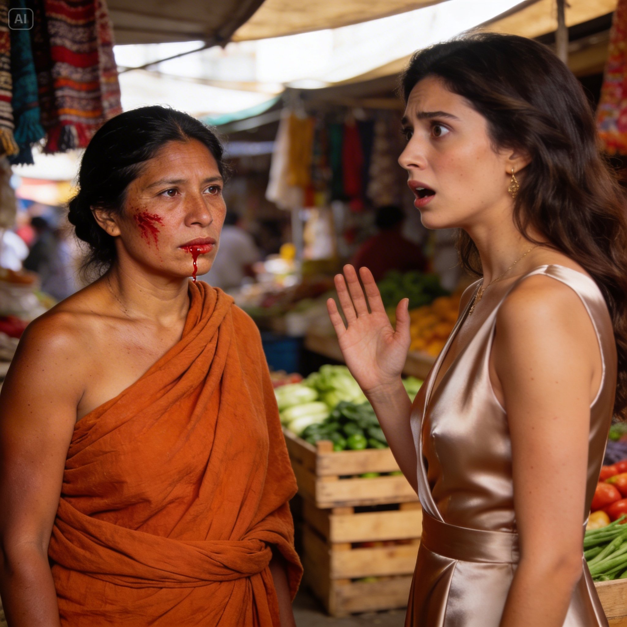 Regina me miraba con los ojos desorbitados, todavía con la mano suspendida en el aire, respirando con una agitación que delataba su propia sorpresa. Sus amigas se habían quedado blancas, como si de pronto se hubieran dado cuenta de que esto ya no era un jueguito de niñas ricas. La sangre, tibia y con sabor a hierro, terminó de resbalar por mi mentón y cayó sobre mi blusa bordada, manchando el hilo blanco con un rojo que parecía brillar bajo el sol.