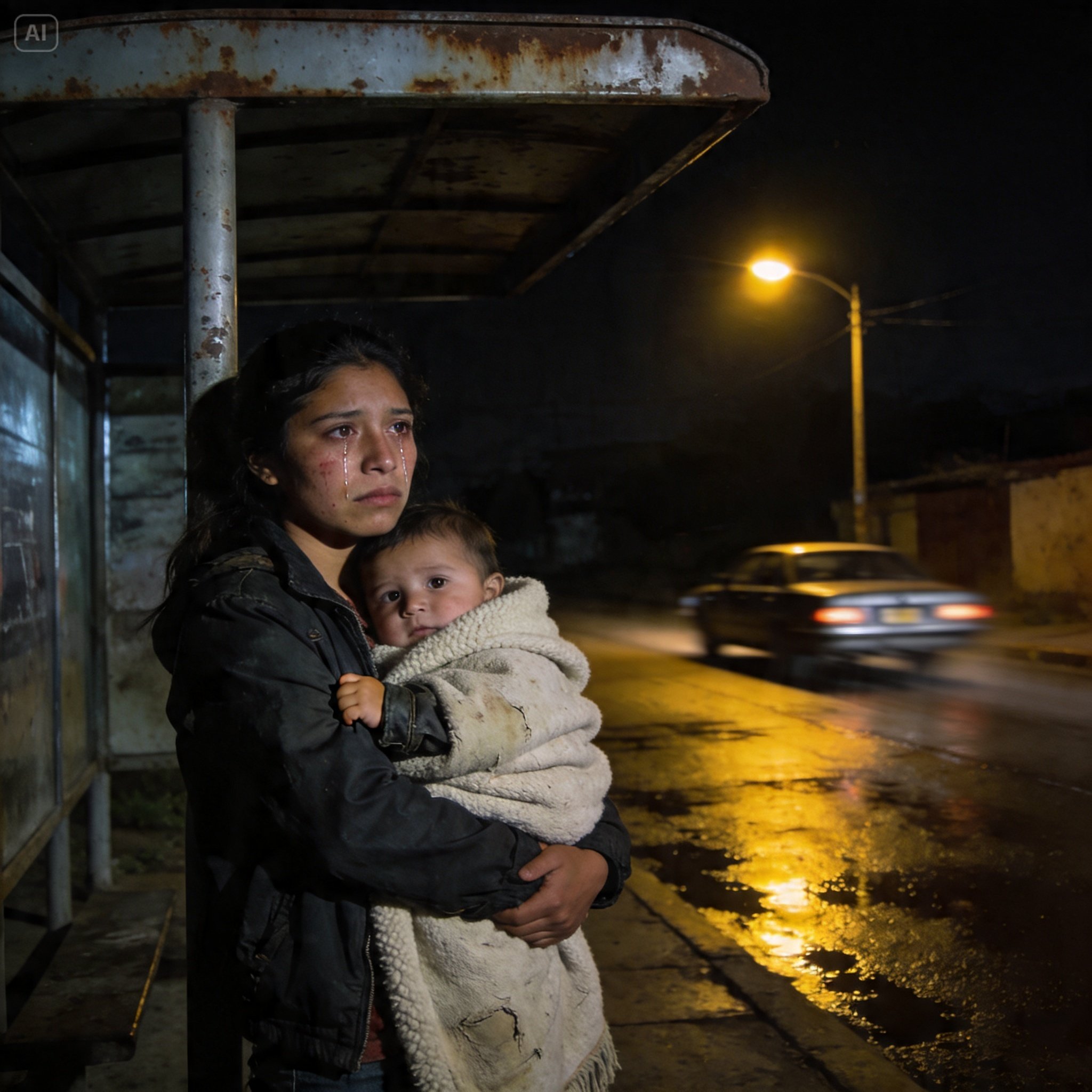 Era la medianoche en una de esas calles oscuras y peligrosas de la periferia, donde el alumbrado público es solo un adorno oxidado que no sirve para nada. El frío de febrero me calaba hasta los huesos y sentía que el aire húmedo me cortaba los pulmones como si estuviera respirando puro vidrio molido. Yo tenía apenas 24 años y sostenía con todas mis fuerzas a mi hija de siete meses, Sofi, envuelta en una cobijita de lana que olía a talco y a una desesperación que ya no podía ocultar.