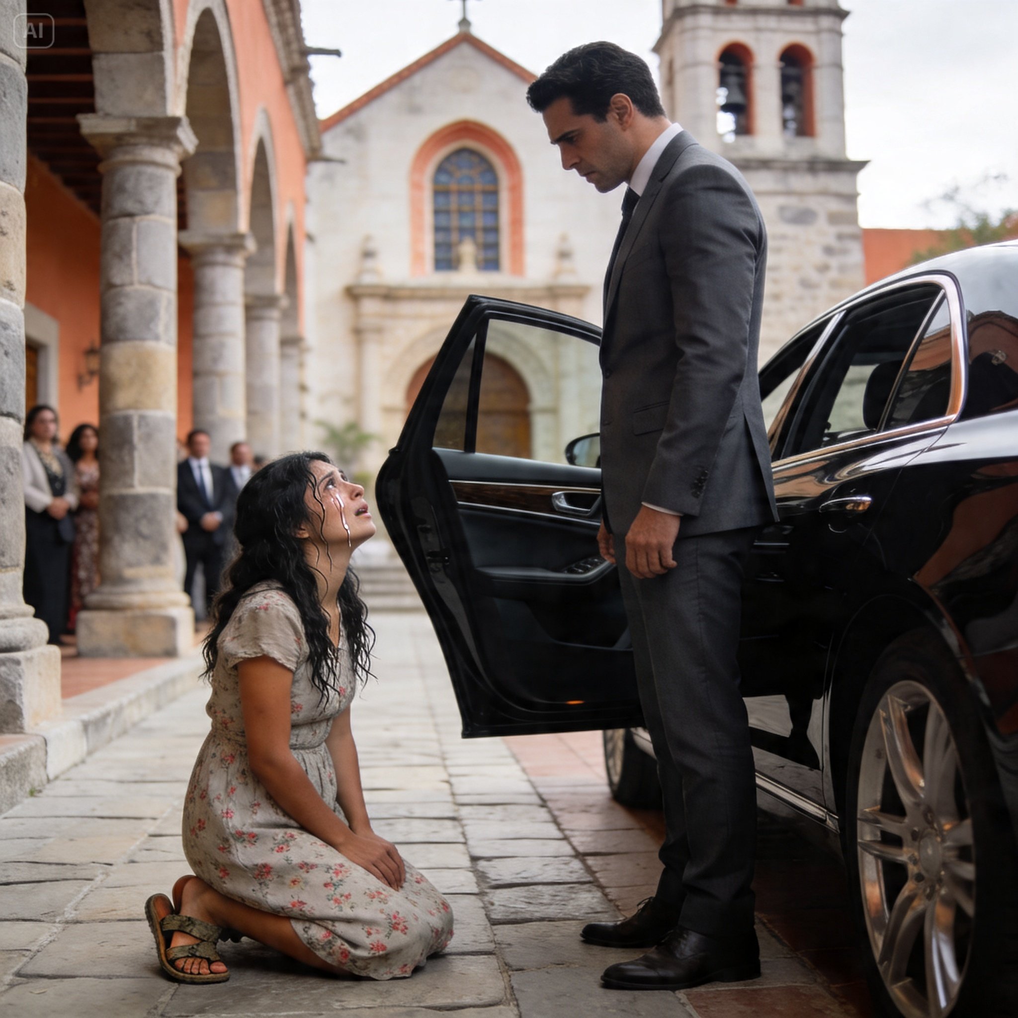 Yo seguía ahí, arrodillada, sintiendo el raspón del cemento en mis rodillas y la humillación quemándome la garganta como si hubiera tragado brasas. El hombre de negro se detuvo frente a la puerta trasera y, con un guante de piel fina, tiró de la manija con una elegancia que me hizo sentir aún más pequeña en mi vestido azul remendado. En ese momento, el tiempo se estiró como una liga a punto de romperse, y cada detalle de la escena se grabó en mi mente con una nitidez dolorosa.