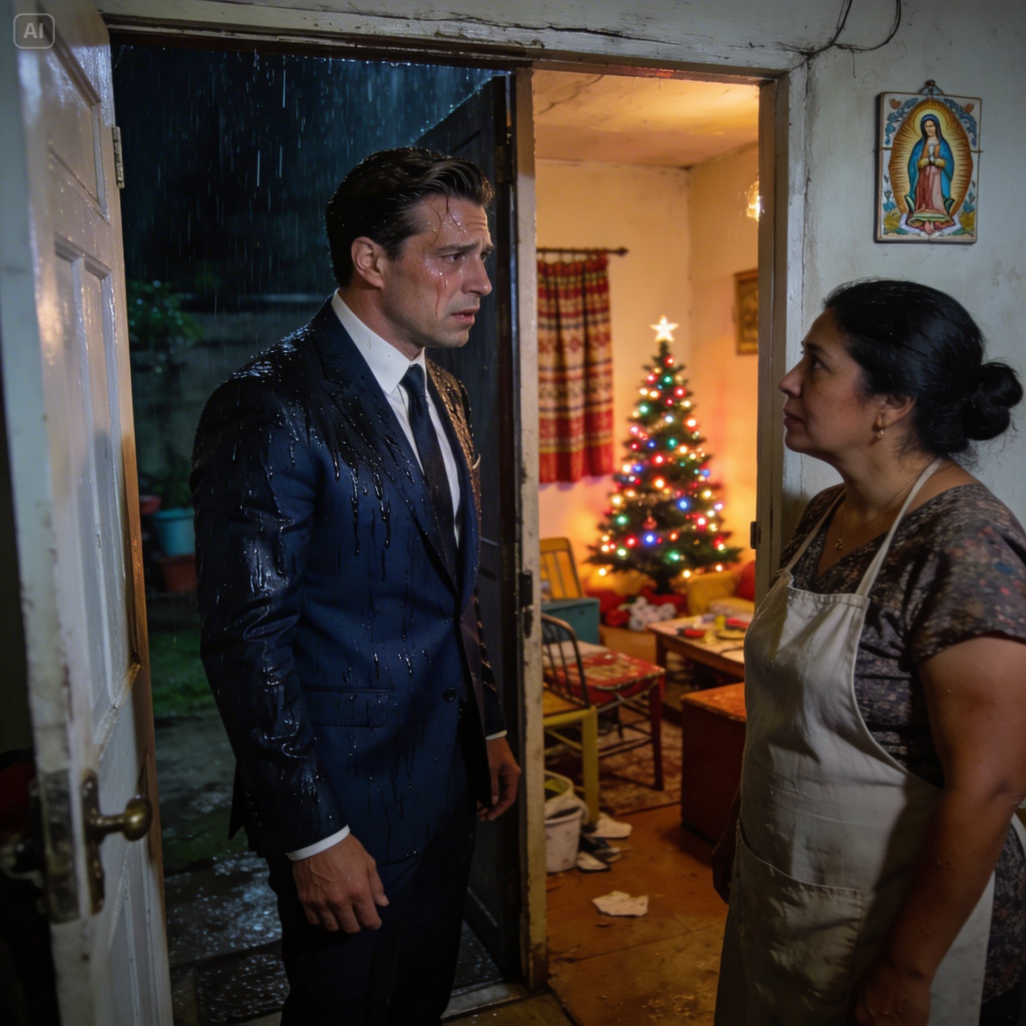 Se bajó bajo una lluvia que empezaba a arreciar, con su traje italiano empapado y el pelo pegado a la frente. Parecía un niño perdido buscando refugio, no el hombre que sale en las portadas de Forbes.