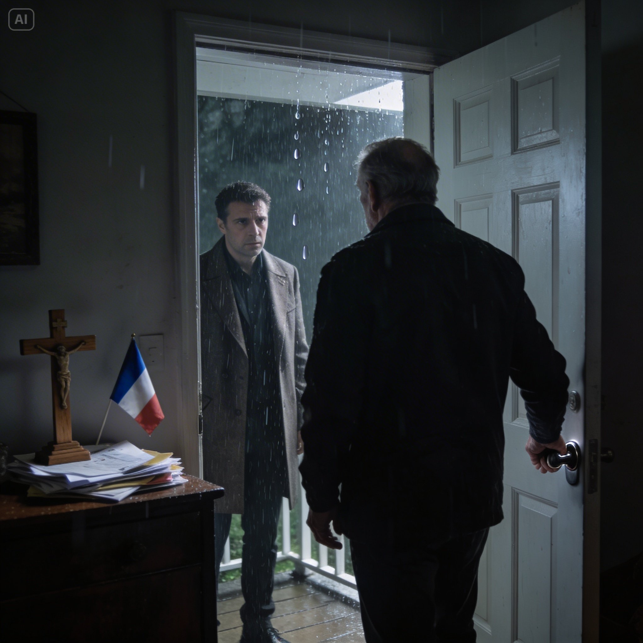 Il est trempé jusqu’aux os. Derrière lui, une Mercedes noire est garée, moteur tournant, les phares balayant les pins. Il me regarde, et sa voix est exactement comme dans mes souvenirs : calme, posée, glaciale.