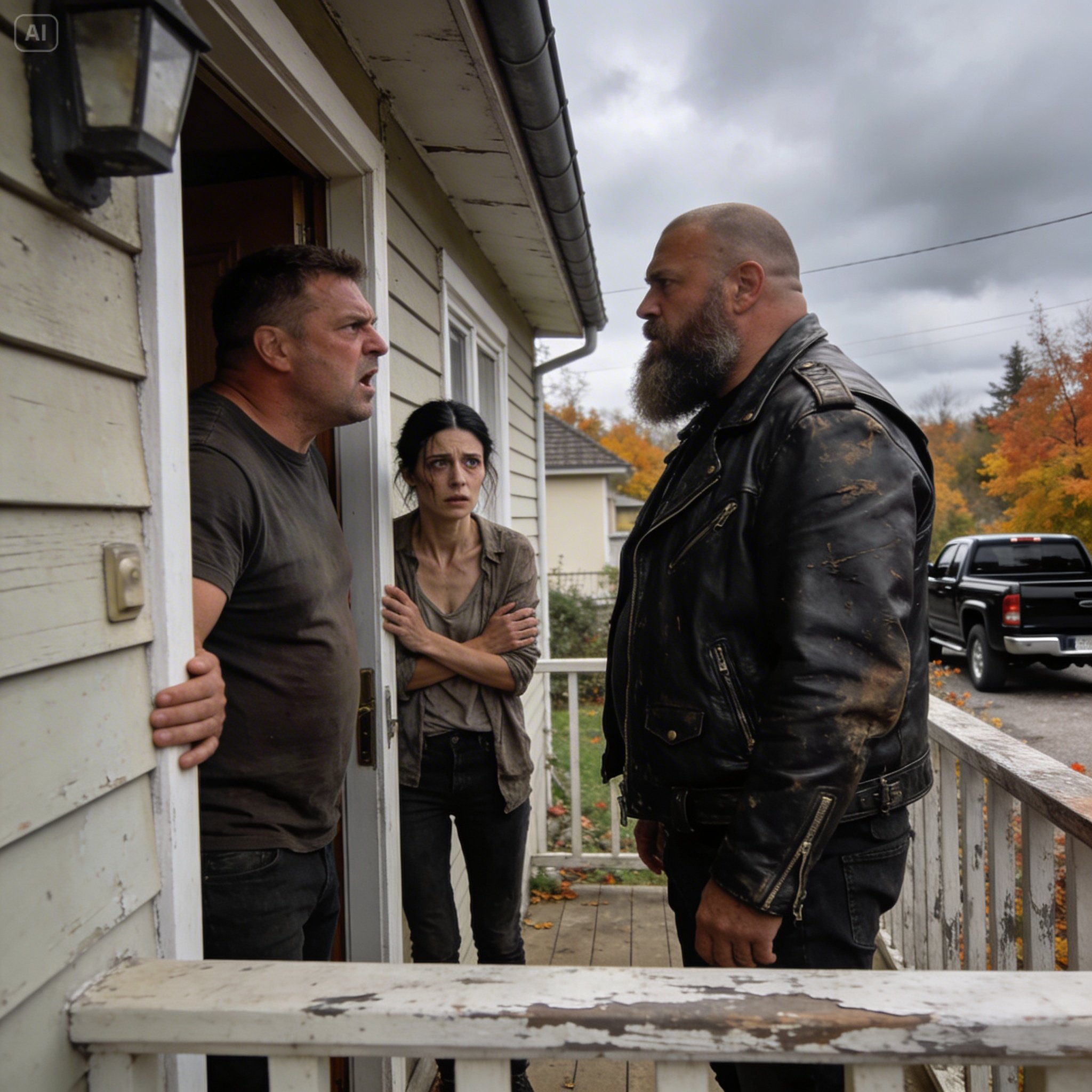 “Je te l’ai déjà dit, dégage de mon porche,” a-t-il répété, sa voix montant d’un octave, trahissant un début de panique. Linda, derrière lui, semblait vouloir se fondre dans le papier peint jauni du couloir, ses mains serrées l’une contre l’autre comme pour s’empêcher de hurler. Elle regardait alternativement l’homme qui partageait sa vie et cet inconnu en cuir qui venait bousculer son enfer quotidien.