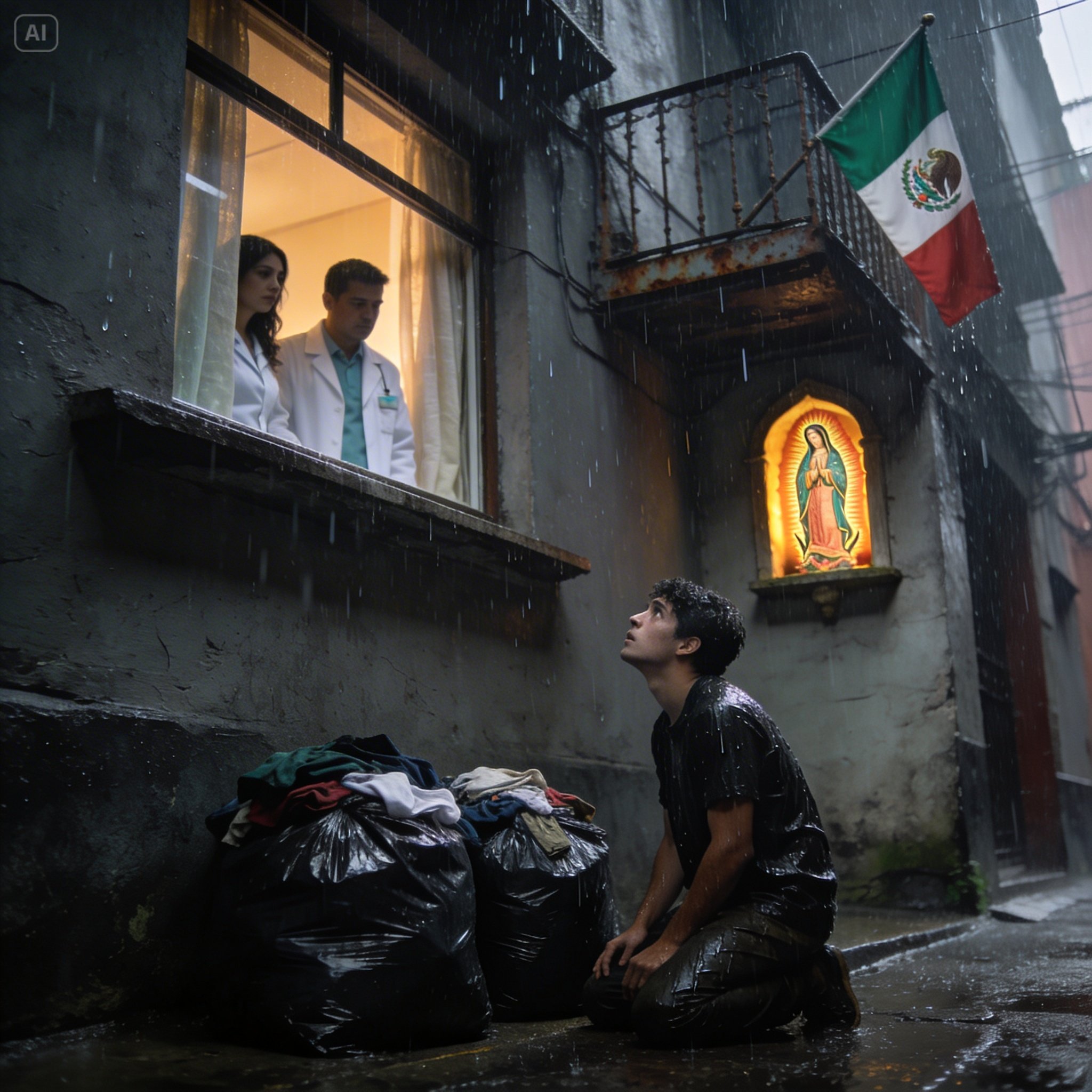 Me quedé solo en el pasillo de la vecindad, con el ruido de la lluvia golpeando las bolsas de basura.
