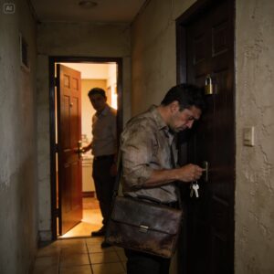 Le silence de l’immeuble était pesant, entrecoupé seulement par le ronronnement lointain de l’ascenseur et le battement sourd de mon propre cœur.