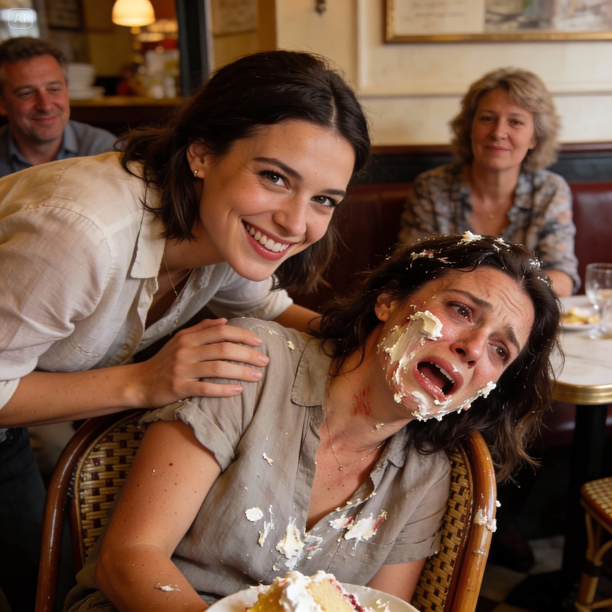 Brooke s’était déjà relevée, époussetant quelques traces de crème sur sa robe rouge. Elle était déjà en train de transformer l’agression en anecdote hilarante. “Vous auriez dû voir sa tête !” racontait-elle, un grand sourire aux lèvres. “Un classique !” Les téléphones, qui s’étaient brièvement baissés, étaient de nouveau levés. Quelqu’un a même suggéré une photo de groupe.