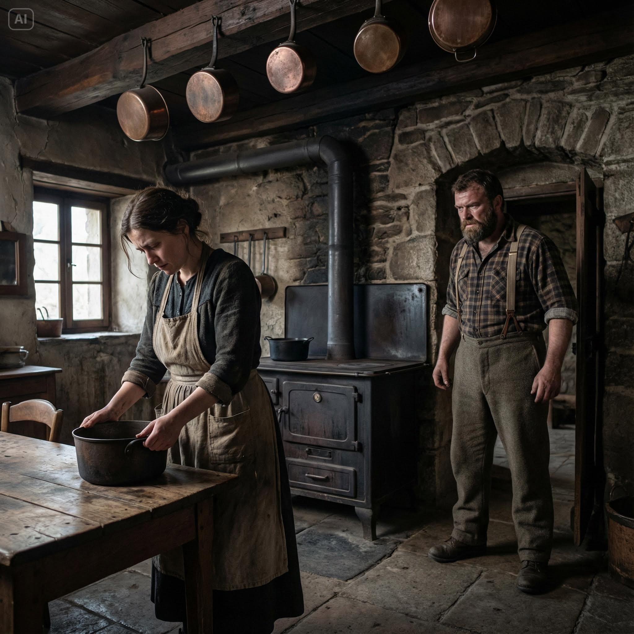 Elle se tourna vers le fourneau. C’était une bête massive en fonte noire, couverte de suie, qui trônait contre le mur du fond comme un autel païen exigeant des sacrifices. Rien à voir avec la gazinière moderne et polie qu’elle avait laissée dans son appartement du 16ème arrondissement de Paris. Ici, pas de bouton à tourner. Il fallait du bois, du feu, et un instinct qu’elle ne possédait pas.
