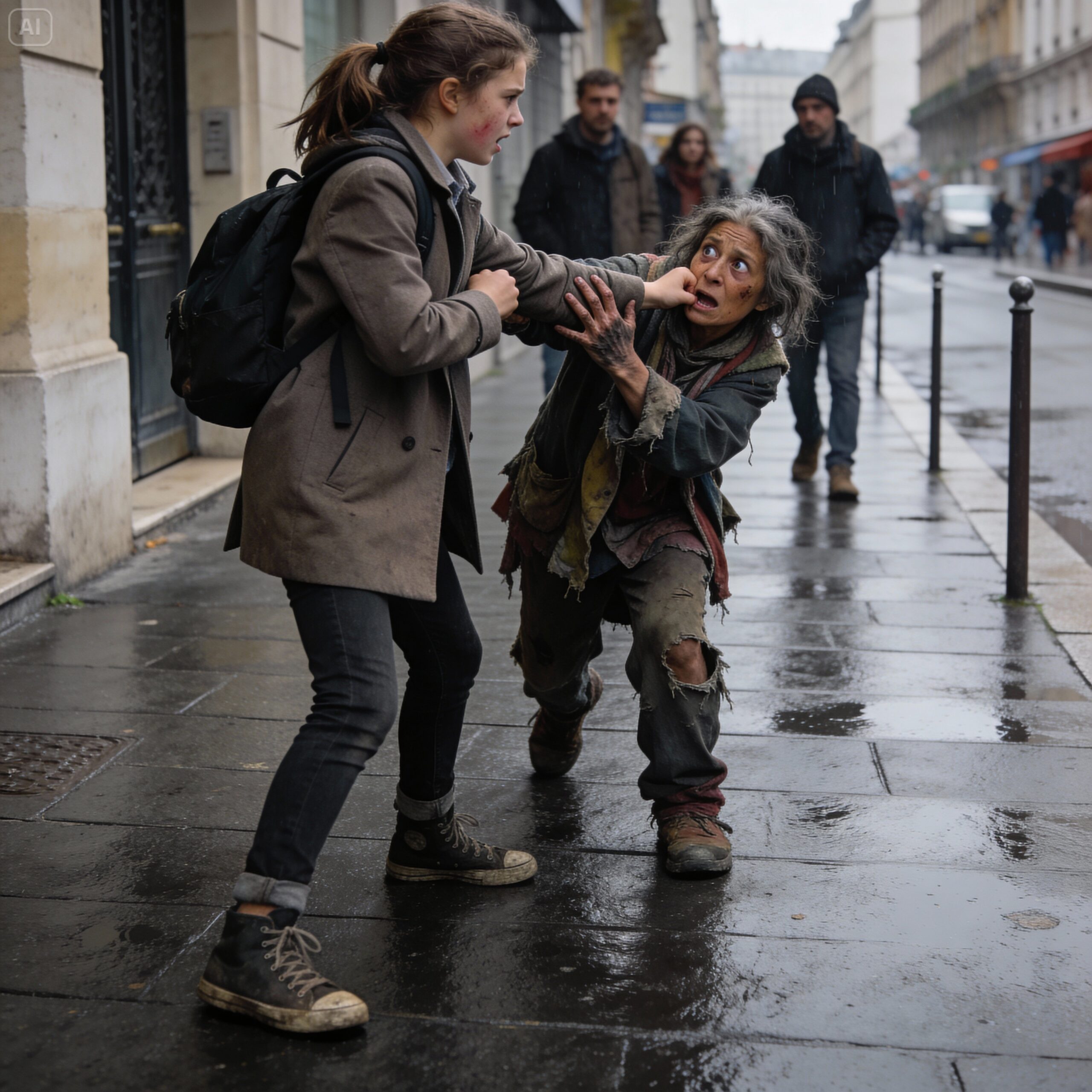 Chaque après-midi, c’était le même rituel angoissant. Avec mes deux meilleures amies, Manon et Jade, nous empruntions toujours le même chemin pour rentrer du lycée : nous descendions la Rue des Lilas, passions devant la boulangerie qui sentait bon le pain chaud, puis nous traversions le vieux square du quartier. C’est là qu’elle était. Toujours assise sur le même banc écaillé, une femme aux vêtements usés par le temps et la misère.