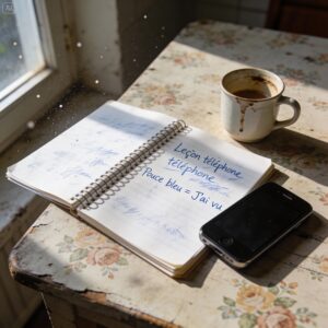C’était son écriture, appliquée, scolaire. En haut de la page, il avait écrit en lettres capitales soulignées : « LEÇON TÉLÉPHONE ». En dessous, il y avait des notes. Des dizaines de notes prises au fil des mois, probablement après mes explications hâtives ou celles de ma nièce.