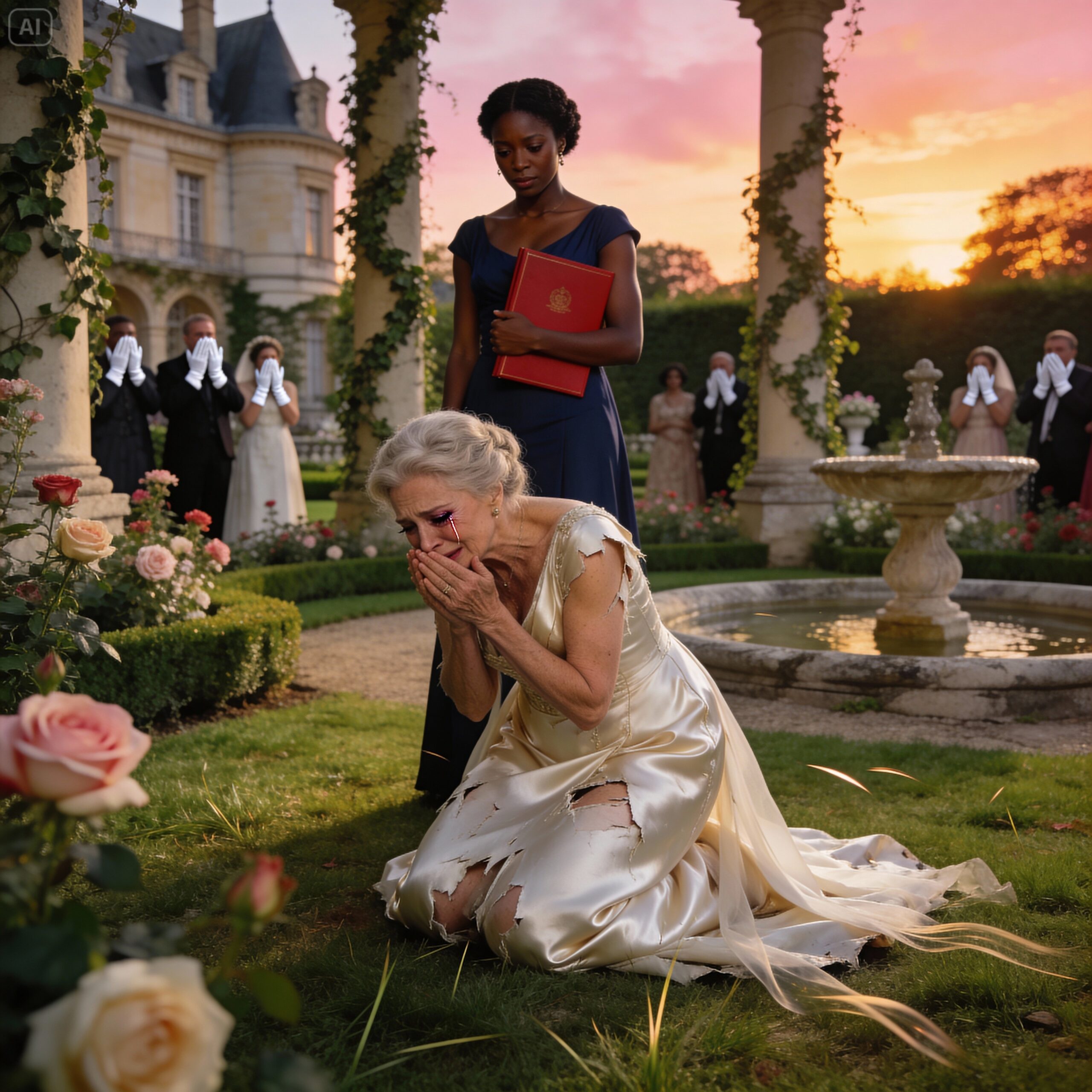 « Sécurité ! Faites sortir cette femme immédiatement ! » La voix perçante de Victoire de Valois résonna à travers les jardins impeccables du domaine en Provence. Sa montre en or étincelait sous le soleil du midi alors qu’elle agitait la main avec un dédain aristocratique. « Je ne laisserai pas la réputation de notre famille être souillée par une intruse qui cherche l’aumône. »