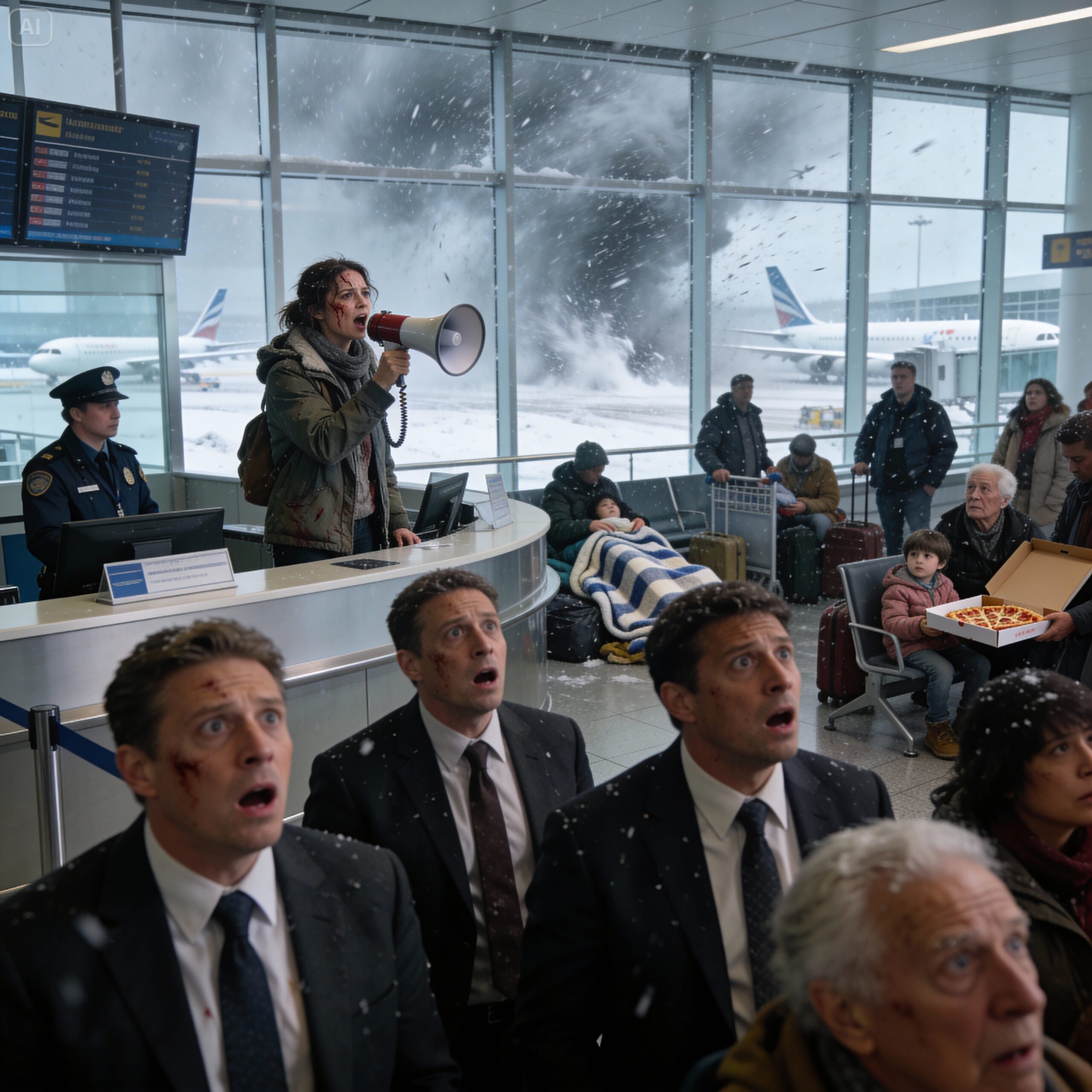 — « Le vol pour Nice est fermé. Si vous avez raté l’embarquement, vous devez vous rendre au comptoir central pour voir les options de modification. Allez, s’il vous plaît, circulez. »