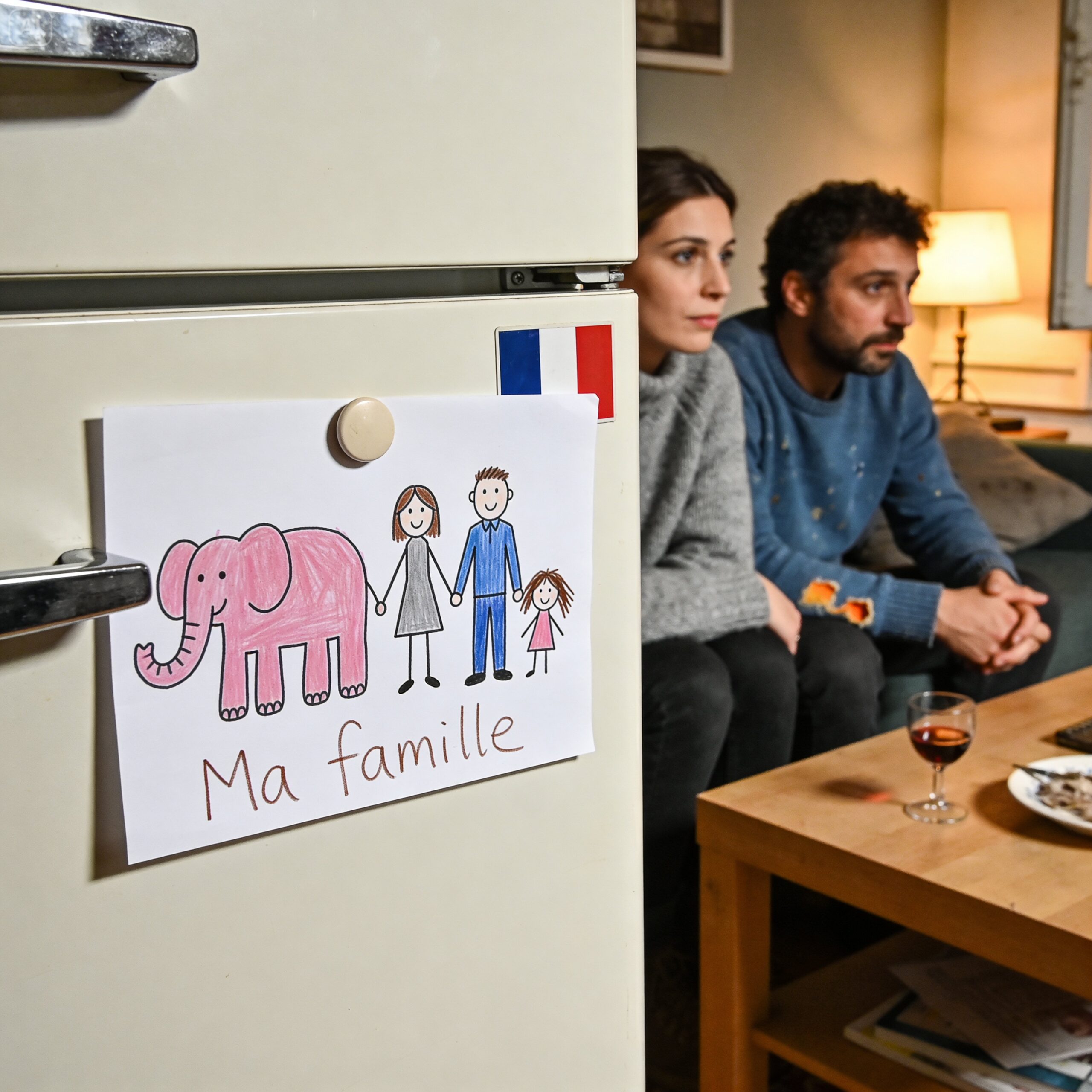 Elle a brandi son dessin sous nos yeux. Un éléphant rose, toujours avec ses quatre trompes, mais cette fois entouré de trois personnages. Une grande femme brune en tailleur gris. Un homme aux yeux verts en pull bleu. Et une petite fille avec des couettes.