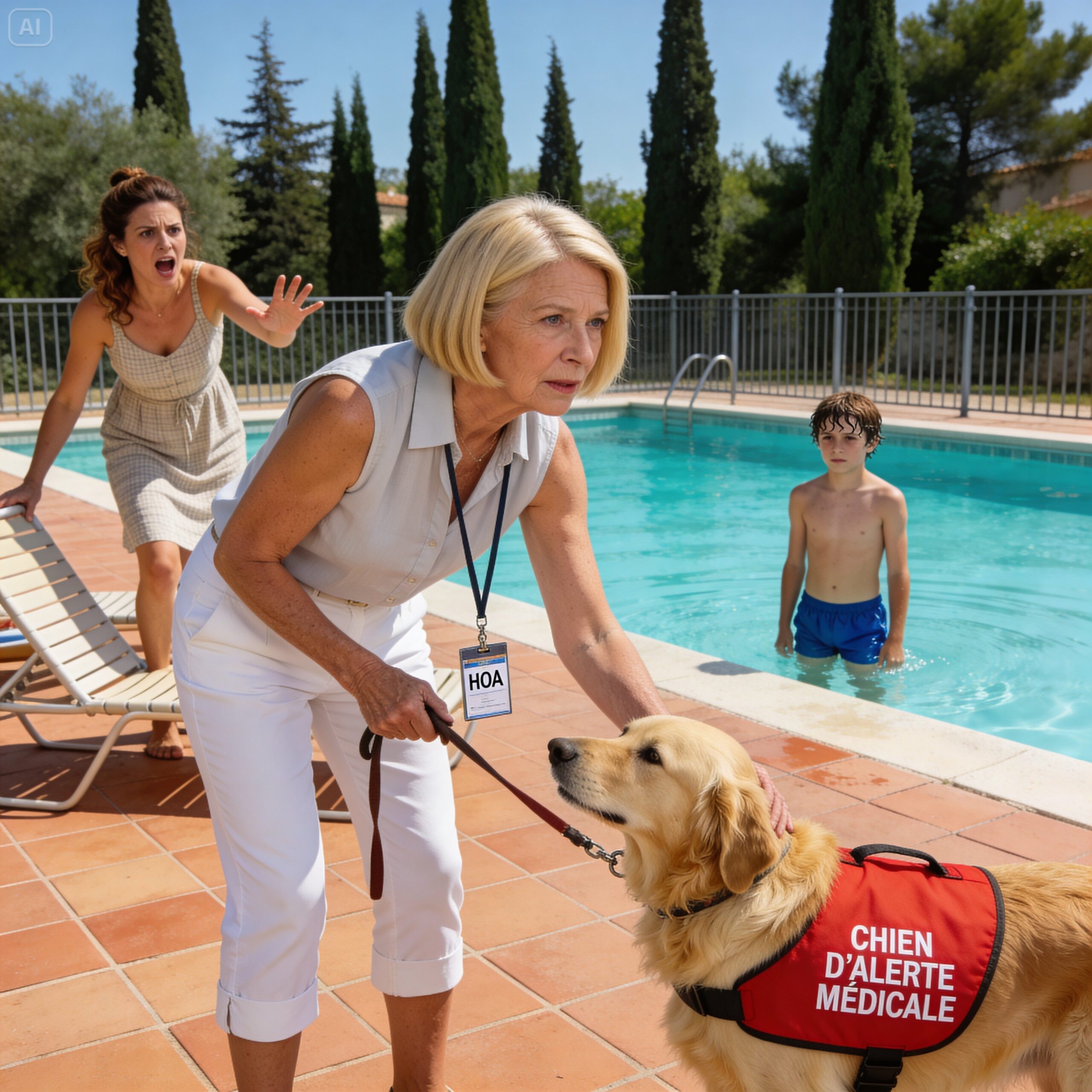 Je suis arrivé à la piscine du Clos des Cèdres onze minutes après l’appel d’Hélène. Je sais que c’était onze minutes parce que j’ai vérifié l’horodatage de mon téléphone plus tard — pas par fierté, mais parce que la chronologie aurait son importance quand je rédigerais le compte rendu formel des événements le soir même.