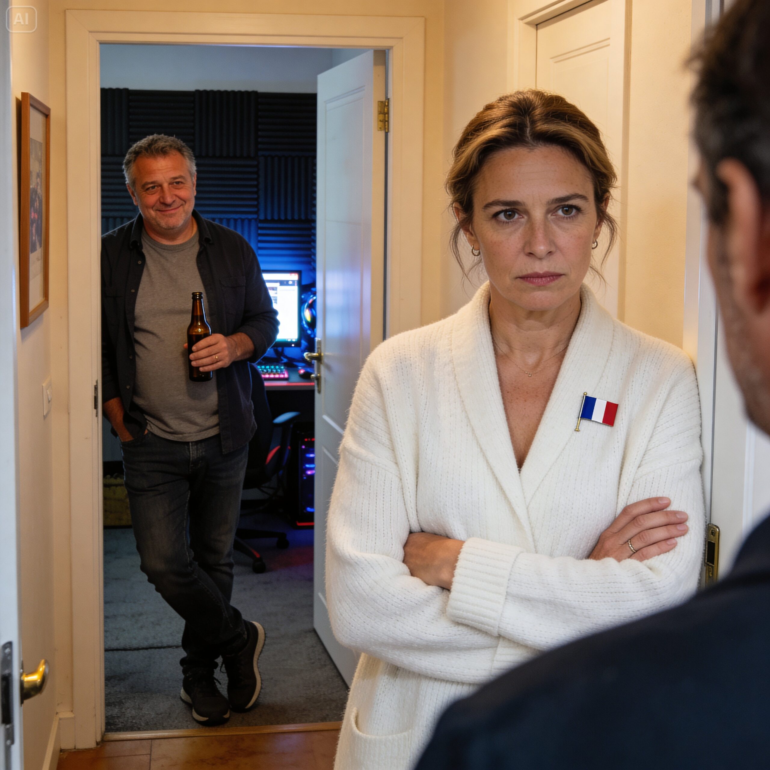 À travers le couloir, derrière Diane et Grégoire, je pouvais voir que la porte de ma chambre était grande ouverte. La peinture rose pâle que j’avais choisie à 12 ans avait été recouverte de mousse acoustique gris foncé. Marc tournait sur une chaise de gaming vert fluo, portant un casque anti-bruit, riant devant un moniteur lumineux.