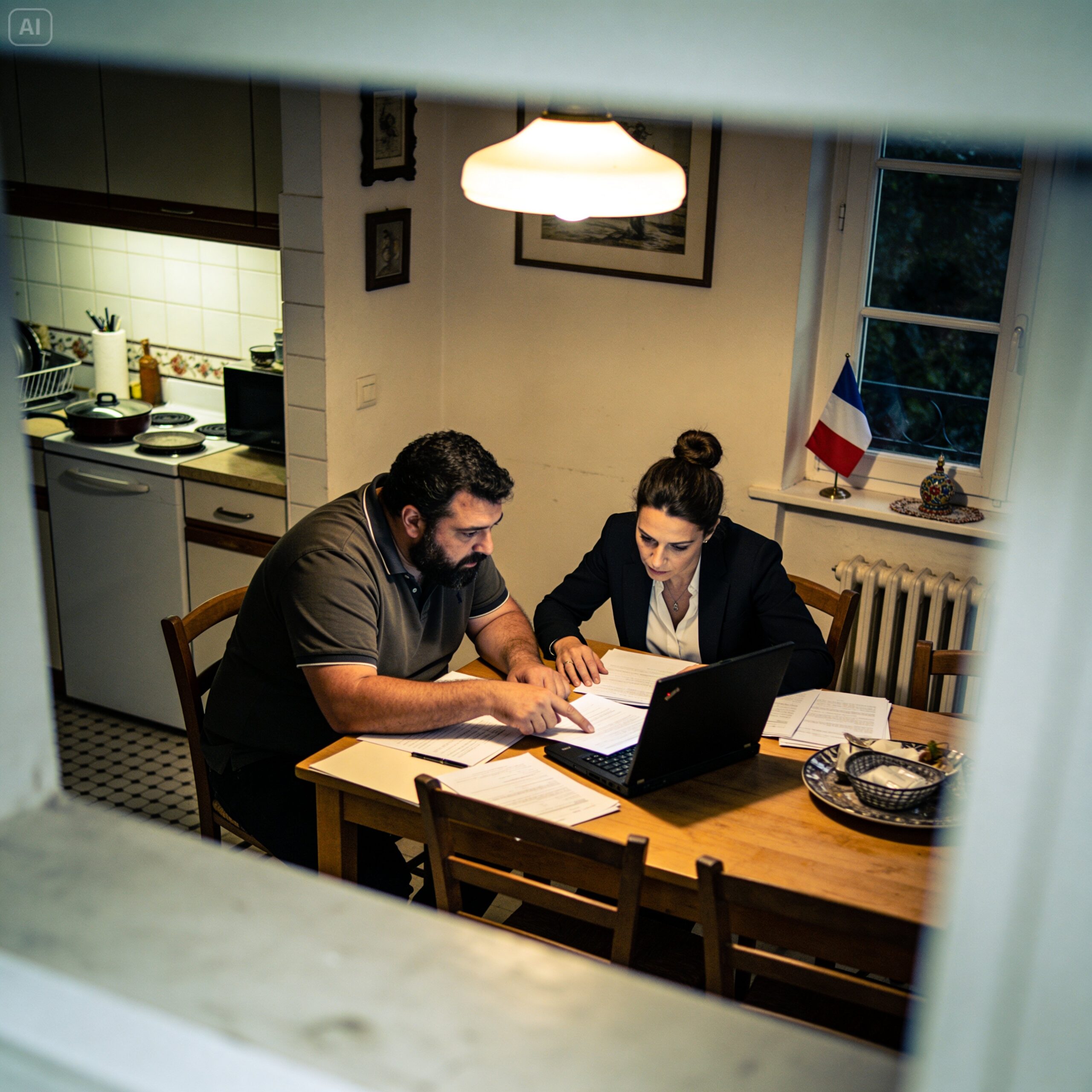 Ils se sont assis à ma table de salle à manger. Depuis l’angle de la caméra de la cuisine, je pouvais voir la table, mais pas lire clairement les documents. Je voyais qu’ils examinaient des papiers ensemble. Elle avait une feuille de calcul ouverte sur son ordinateur portable. Il pointait quelque chose sur une feuille de papier. Ça ressemblait à une réunion, une réunion de travail dans ma salle à manger.