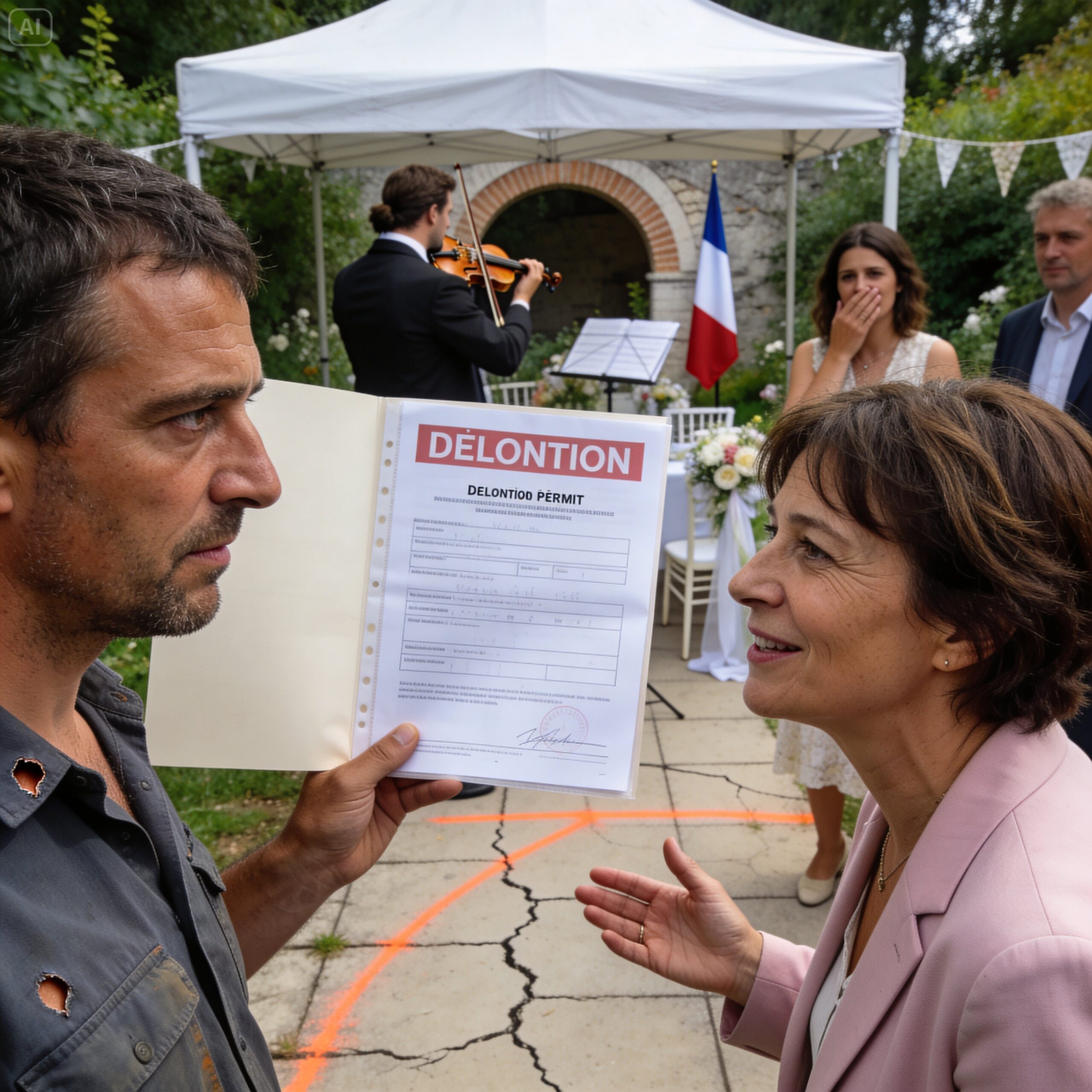 Il s’est arrêté à deux mètres de Martine, le souffle court, non pas de colère bruyante, mais d’une rage contenue qui lui blanchissait les jointures. « Expliquez-moi, » il a dit. Sa voix ne tremblait pas. « Vous m’avez juré que le lieu était réservé, que tout était en règle. Pourquoi le propriétaire est là, debout, avec un permis de démolition dans les mains ? »